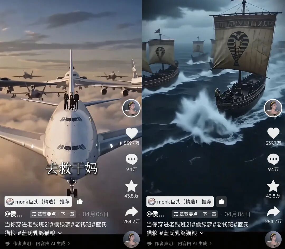 这些视频也证明,AI视频早已不是只有帅哥、美女、萌宠的过家家游戏,而是更多受到大众欢迎、主流认可。