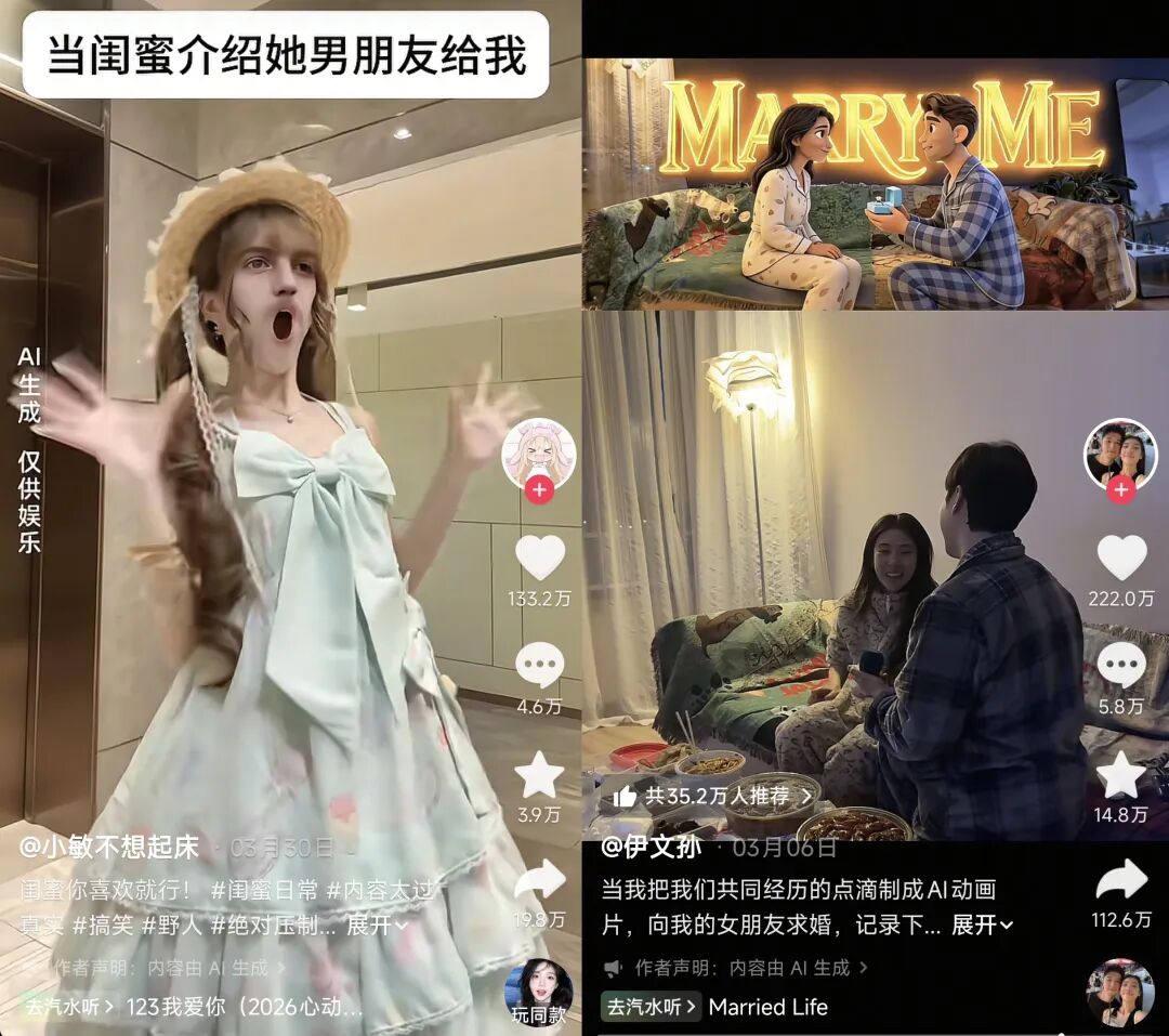事实上,在经历早期的技术尝鲜和视觉轰炸后,情感共鸣正在重新回归,成为AI内容的关键。能让网友停留点赞的是AI背后的故事、情感、创意、审美,而非AI本身。
