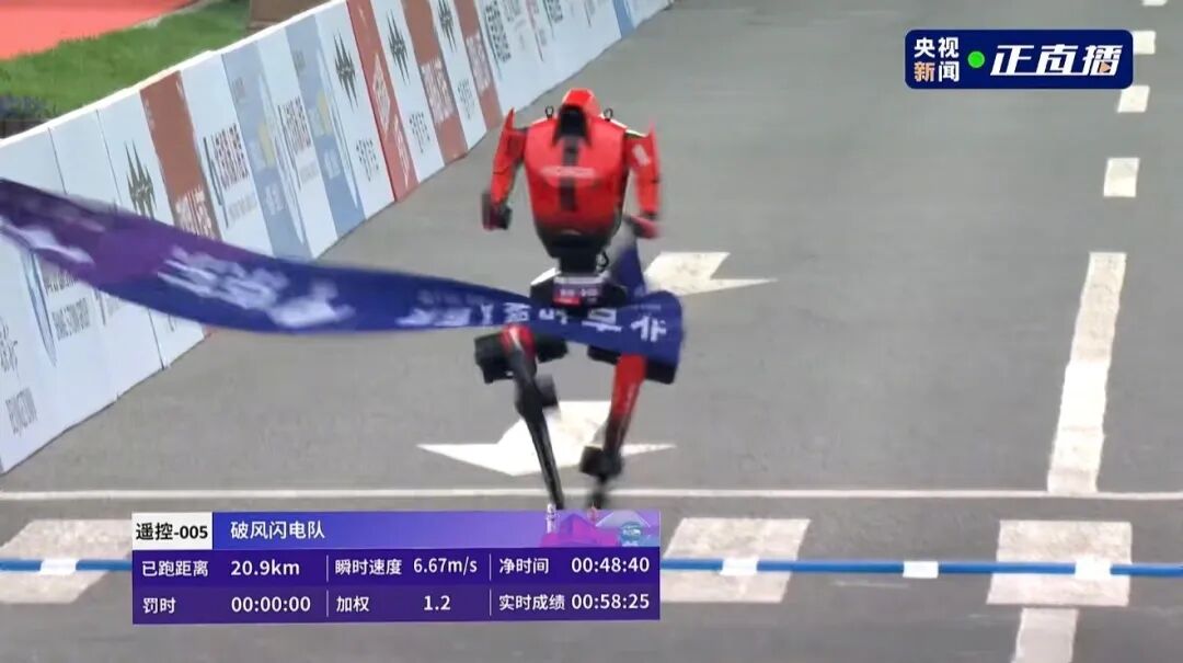 2026年4月,北京亦庄,一台名叫"闪电"的机器人率先冲过终点线,赢得了第二届机器人半程马拉松的冠军: