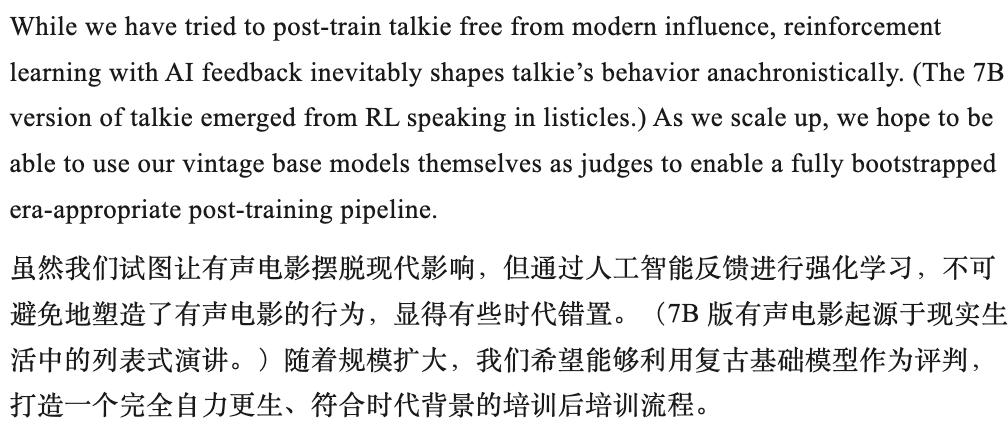 团队发现,早期那个7B版本的talkie,经过强化学习之后,居然学会了用现代互联网那种1. 2. 3.的列表体说话。