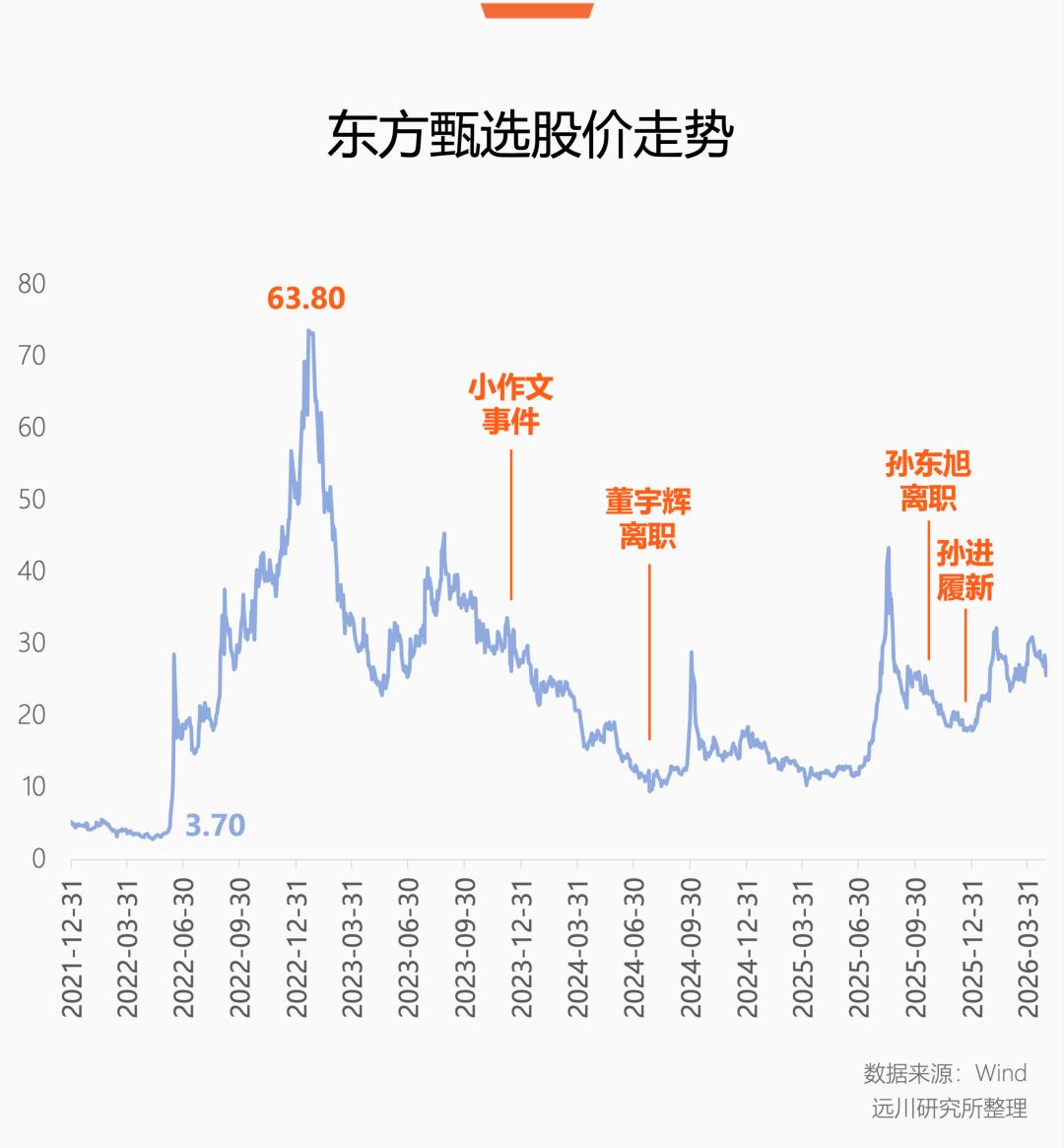 痛失核心成员的阴影仍在追着东方甄选。董宇辉单飞的不到两年时间里,东方甄选掉粉超过150万;一台手机把公司和老板摔上热搜的孙东旭离开后,公司股价也下跌了5.4%。