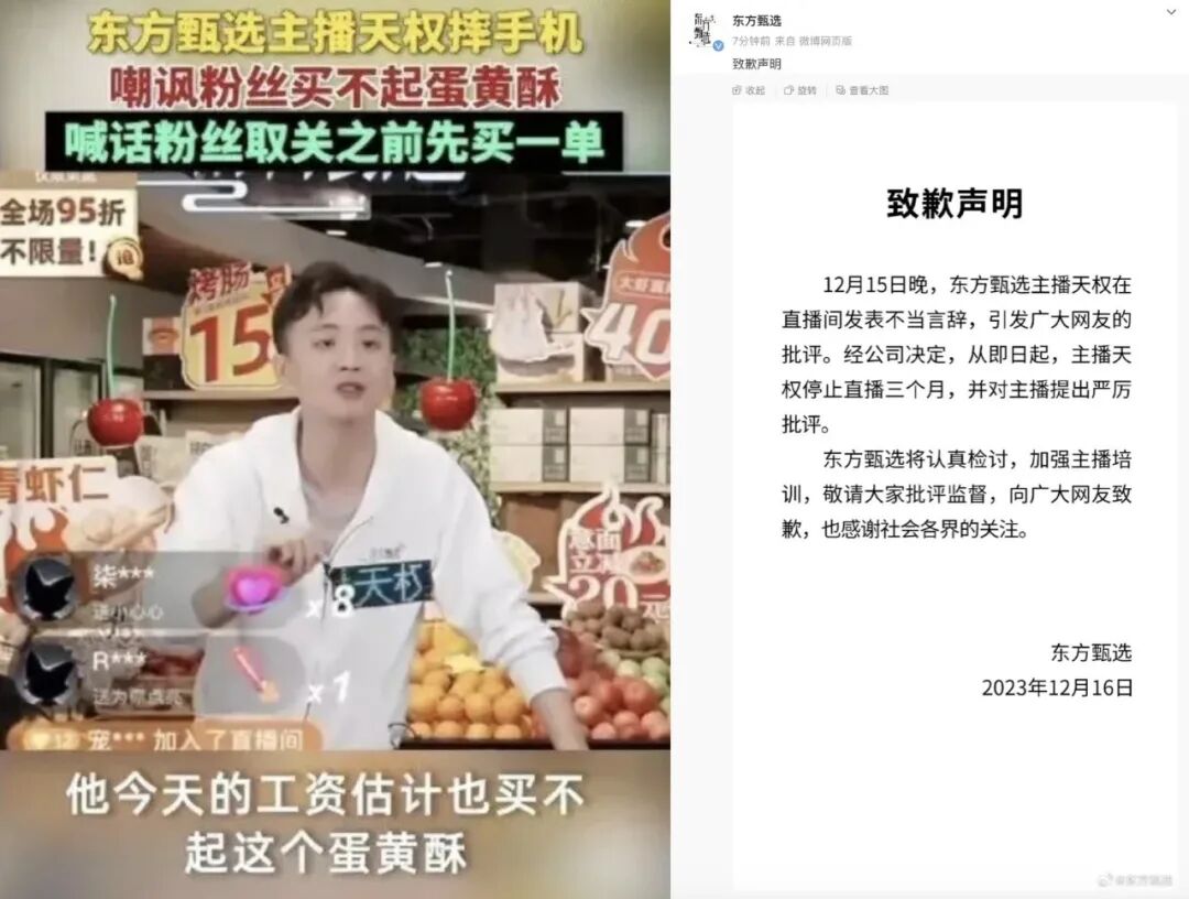 类似的场面只多不少。2023年12月,主播天权一句“一天工资买不起蛋黄酥”让人无端想起某位故人;2024年6月,主播明明用“山河破碎”形容贵州地形,又让东方甄选陷入文化人不能没文化的争议。