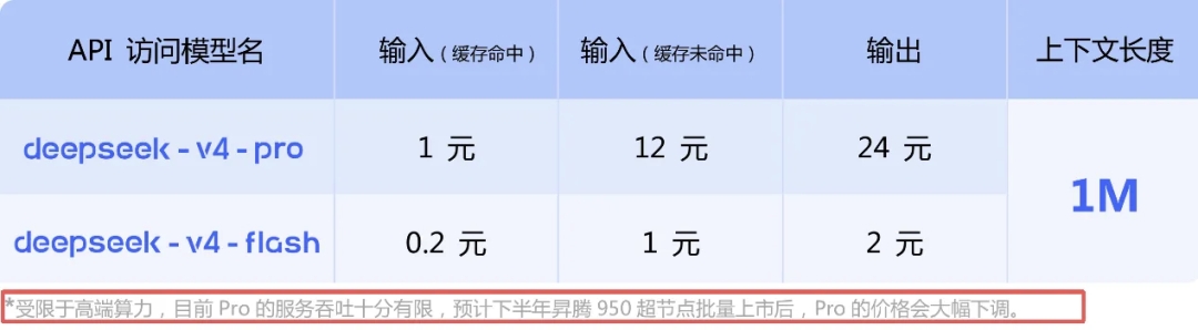 在V4价格说明中有一行几乎被忽略的灰色小字:“受限于高端算力,目前V4-Pro的服务吞吐能力十分有限,预计下半年昇腾950超节点批量上市后,Pro的价格会大幅下调。”这行字明白地揭示了国产算力适配的现实骨感:尽管跑通了,但规模化商用仍需时间。
