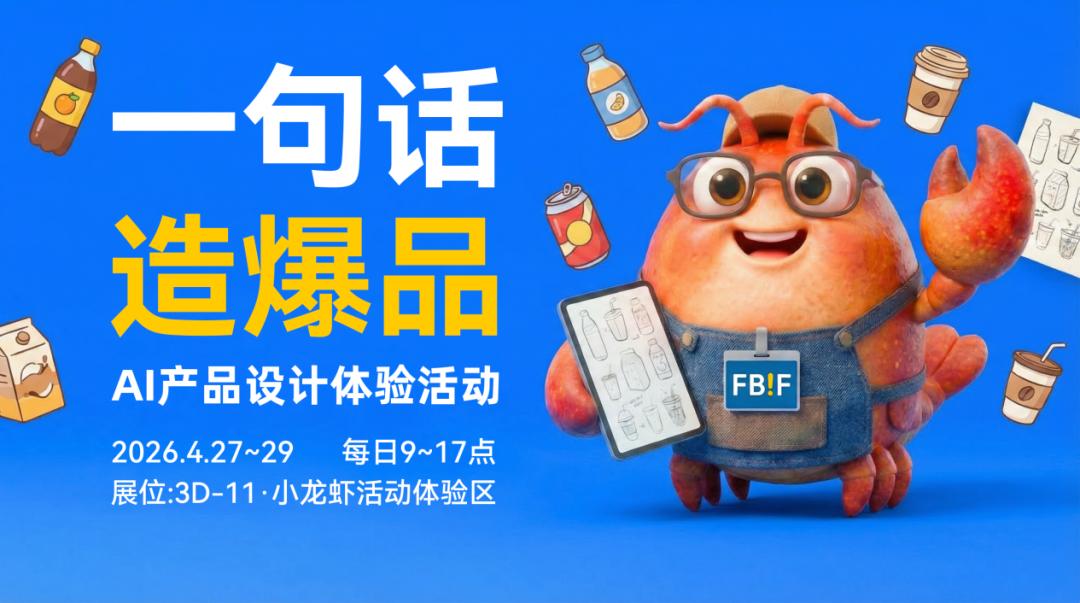 今年展览新增了小龙虾AI产品设计体验活动——「一句话造爆品」 。观众只要输入产品想法,10分钟,从0到1,即可获得一份产品设计方案。