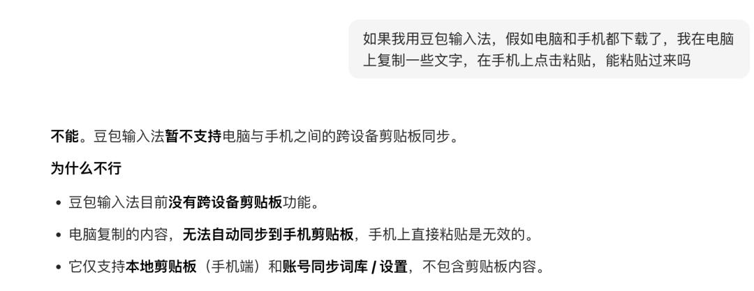 前段时间我听说了豆包输入法,但我想先了解一下它是否支持跨设备复制粘贴,再决定是否下载,因为我现在使用微信输入法有这个功能,要是豆包没有,那费劲下它干嘛。