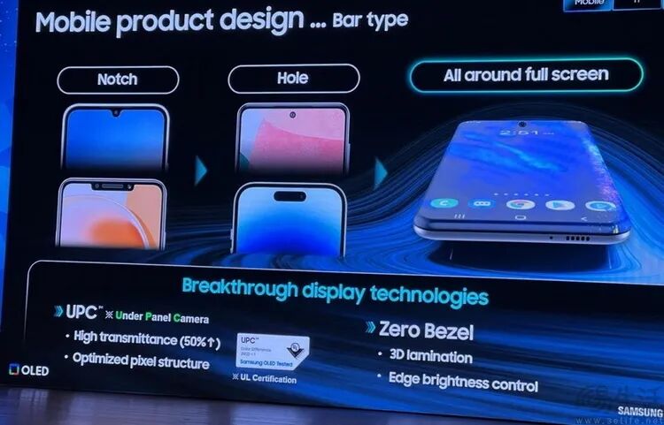相比之下,真正比较接近如今iPhone爆料的“多曲面”手机,其实只有两个例子。一个是小米在2021年公开,且如今可以证实有少量实际生产的四曲面工程样机。另一个则是三星在数年前展出过的全曲面屏幕面板方案,但它甚至都没有可以实际证明其存在的“真机”,但数页来自三星显示的PPT,足以证明他们当时已经有了量产这种屏幕面板的能力,并且有向客户进行推广的意图。