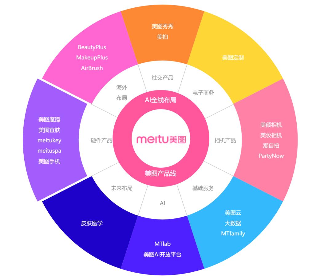 大家对美图秀秀再熟悉不过了,但你也许不知道美颜相机、美妆相机、美铺、美图美妆、潮自拍、美拍、PartyNow、BeautyPlus等都属于美图的产品。