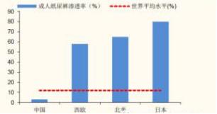 图:我国成人纸尿裤渗透率远低于欧美和日本