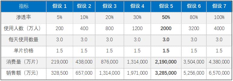 我们以4000万失能失禁老年人口为基数当渗透率达到50%时,其国内市场规模就可以达到300亿(我国目前60亿的市场规模有一半基本上是出口国外)。