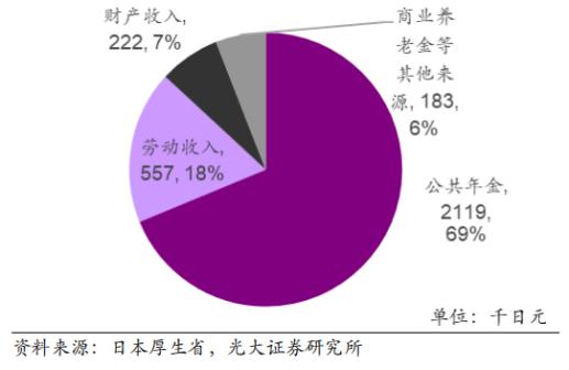 根据数据,2016年日本仅政府主导的公共年金人均年支付金额就达到4~9万元人民币,所以会看到日本老年家庭收入结构中油68%都是来自于这个公共年金