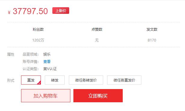 根据品宣投放交易网站“媒介圈”上的公开信息,某位知名乐评人的营销推广分为直发、转发、微任务转发价、微任务直发价,四种形式均在3万元左右,其中直发推广的价格达到37797.50元。根据平台信息,截止到4月12日,其月销量为17次。