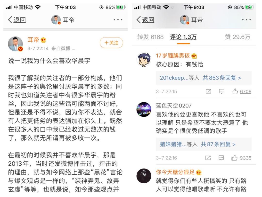 耳帝微博评论区截图