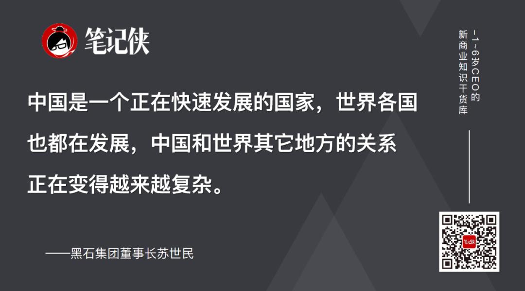 苏世民(黑石集团董事长):我觉得中国企业未来也会在中国做出更多的投资,因为我觉得,中国未来可能内部的需求和增长也会更强劲一些。