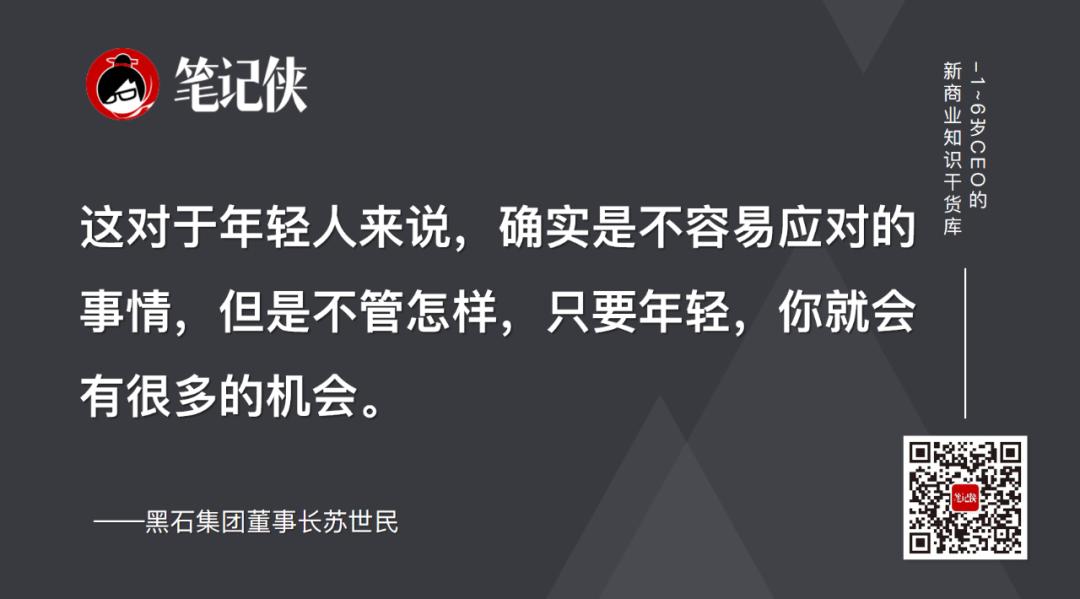 苏世民(黑石集团董事长):这对于年轻人来说,确实是不容易应对的事情,但是不管怎样,只要年轻,你就会有很多的机会。