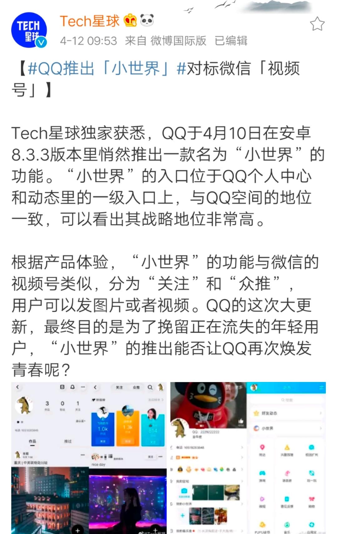 对标微信「视频号」,QQ推出「小世界」激活年轻人