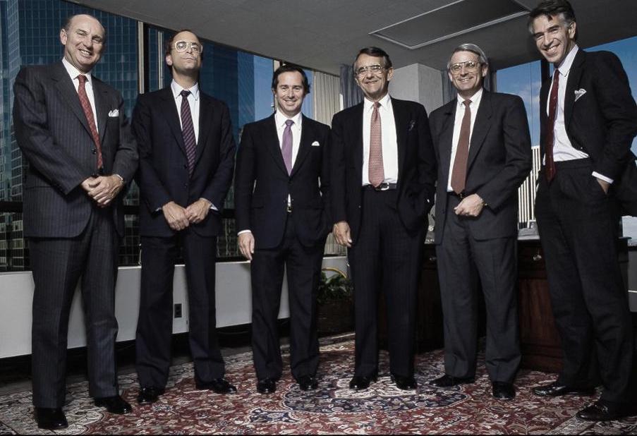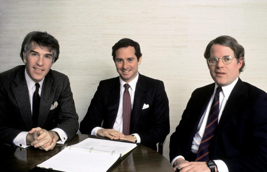 1985年,38岁的苏世民(中)与雷曼兄弟其他高管,同年他创立了黑石 来源:achievement.org