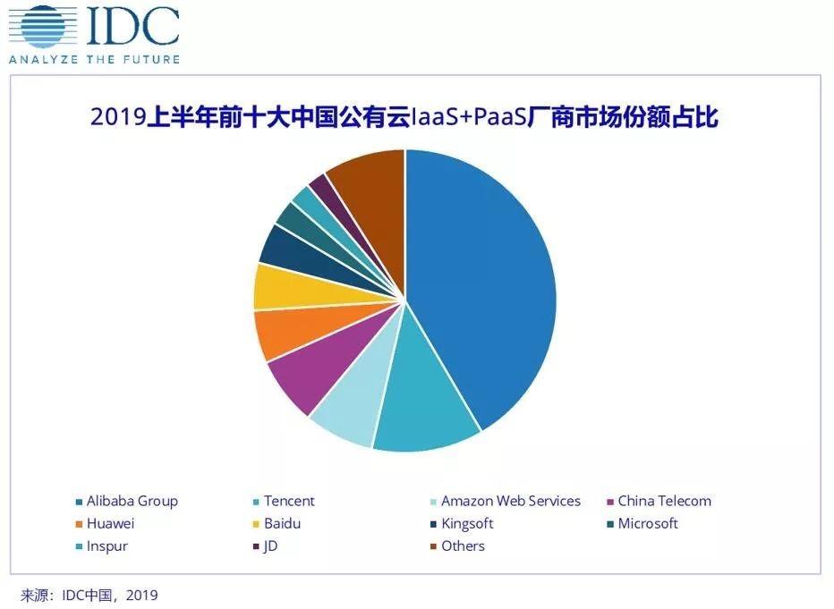 依据IDC发布的《中国公有云服务市场(2019上半年)跟踪》报告显示,前五大厂商占据74%的市场份额,他们分别是阿里、腾讯、AWS、中国电信和华为。同时,无论是IaaS市场,还是IaaS+PaaS市场,排名前10的厂商目前已占据了超过90%的市场份额。
