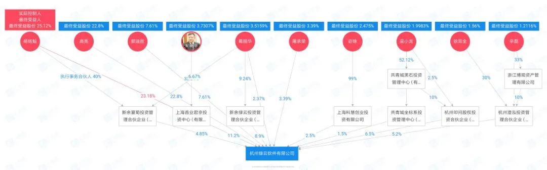 从股份占比上来看,上海科慧在绿云中所占股份并不多——仅为2.50%,这并不足以撼动绿云原有股东的地位。如图1 所示,在引入上海科慧的资金之后,绿云的实际控制人仍为杨铭魁,其合计持股比例为25.12%,第二大股东高亮的持股比例为22.80%。但值得注意的是,随着绿云引进携程关联公司的资金,市场上主要的几家PMS厂商都有了OTA背景。