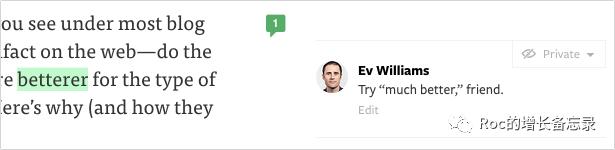 关于Medium这其中值得一提的就是,Medium在in-content interaction(基于内容本体的互动)上做了有趣的创新,首次把在文章的文本中highlight(高亮/划重点)和notes(笔记)的这项功能引入。大家想想在读纸质书的时候,是不是有很多人喜欢在上面圈圈点点,画横线,添加批注,Medium很好的把这一功能引入平台,并且社交化,让他人可见,使得其更容易被分享和传播。
