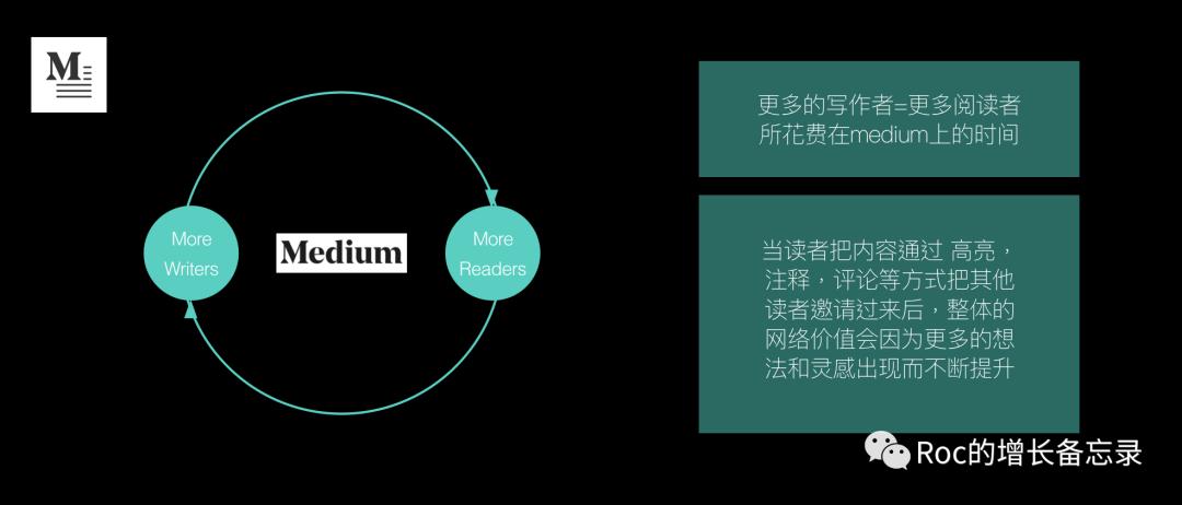 我们知道Medium即是一个双边市场,具备双边网络效应,就是平台有越多作者并创造越多的内容,更多的阅读者会花费更多的时间在Medium上。