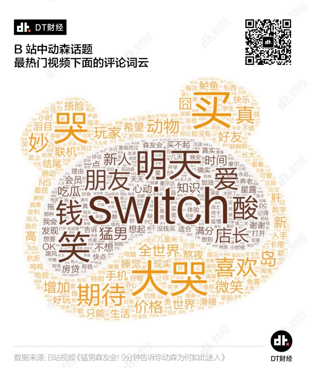 而从这条视频的评论来看,虽然绝大部分仍旧是“全世界就我没玩森友会”“首先你得有个switch”的云玩家,但“明天”“期待”“朋友”等词语高频出现,也表明了这个游戏打动人的点在哪。