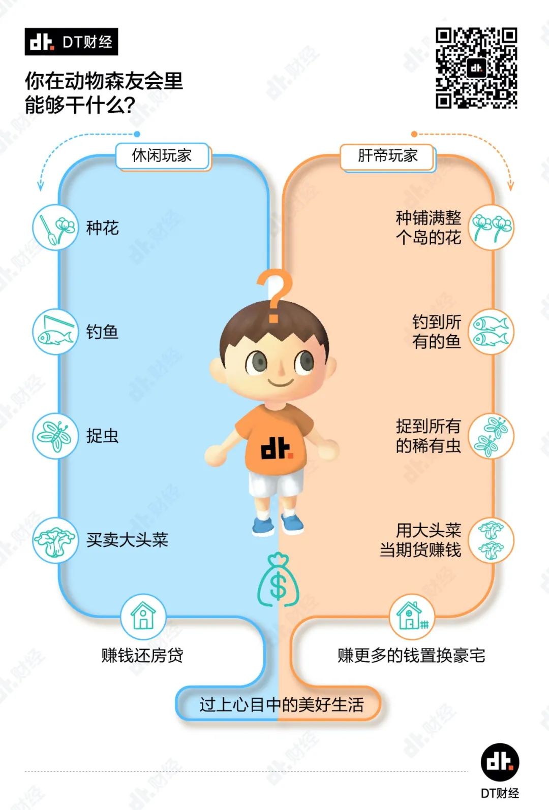 这时候,动森生活很容易就变得比现实更加辛苦。毕竟现实生活里并不是努力就有收获,所以我们多半都不会那么肝。但动森是一个努力就能赚钱的自由世界,大家为了搭建出美好的“世外桃源”场景,短期内很容易就成为肝帝。
