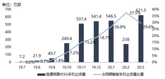 最前线 | 信通院:3月国内智能手机出货量环比增长超2倍,5G手机占比回落