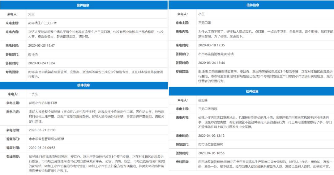 三无口罩以彭场为中心,甚至有向外扩张之势,镇属的村落,隔壁的城镇都有群众举报三无口罩的情况。