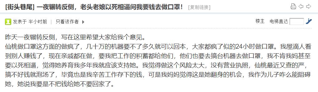 但时间还在流动,政府的严加监管或许能为彭场镇带来一丝曙光,改变外界对彭场镇的印象,扭转彭场镇全民投资口罩的怪现象,健康持续的产业绝不是一蹴而就发展而成的。