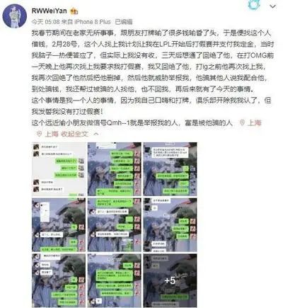 就在官方发布处罚后的一天,选手王湘在自己的微博上发文爆出新证据,表示自己虽存在违纪行为,但从未打过假赛。