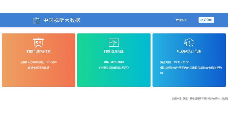 先是于2019年底悄悄上线收视综合评价大数据系统。虽然页面布局过于简单,但是因为样本覆盖了全国1.4亿有线电视、IPTV用户直播收视行为数据,加上数据清洗相关工作,这份收视率数据绝对是目前国内最权威的收视数据。