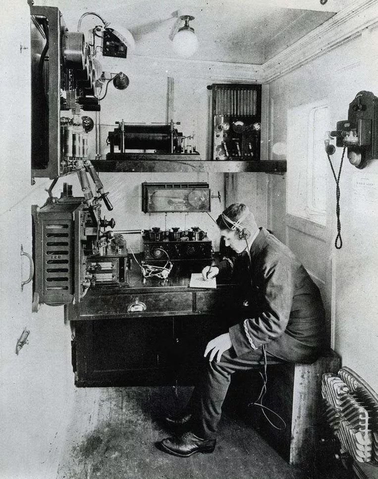 当时的无线电报机,采用的是火花隙式发射机(spark-gap transmitter),传输的信号内容,是摩尔斯电码。