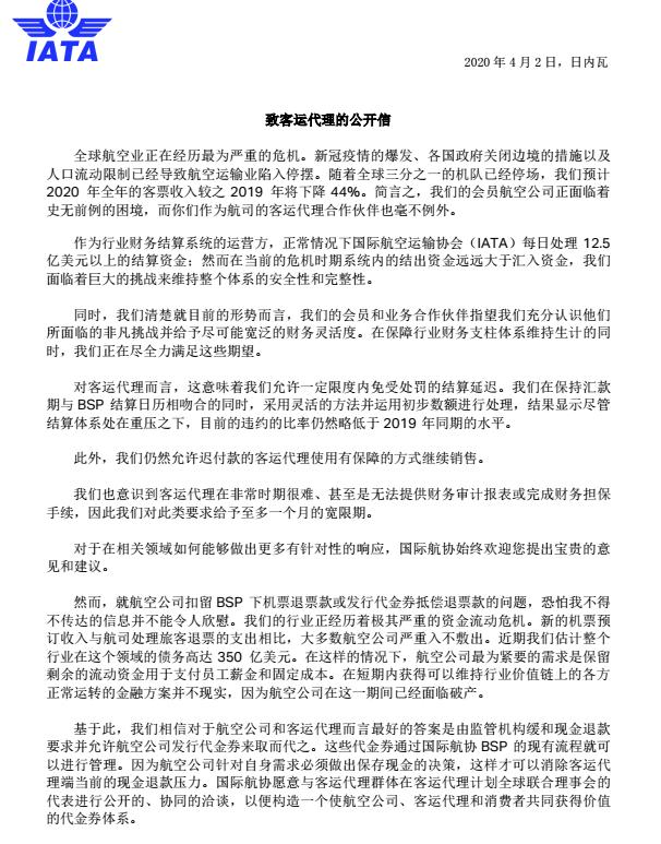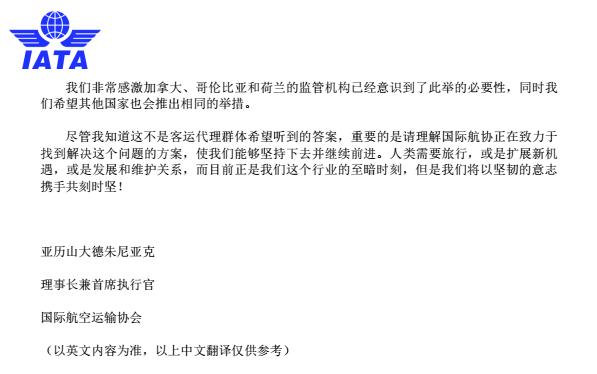 IATA是航司组成的协会,只会从航司的利益出发。目前航司确实面临很大难关,这封《公开信》只是想单方面认可不退钱的事情,避免代理人和航司吵架。