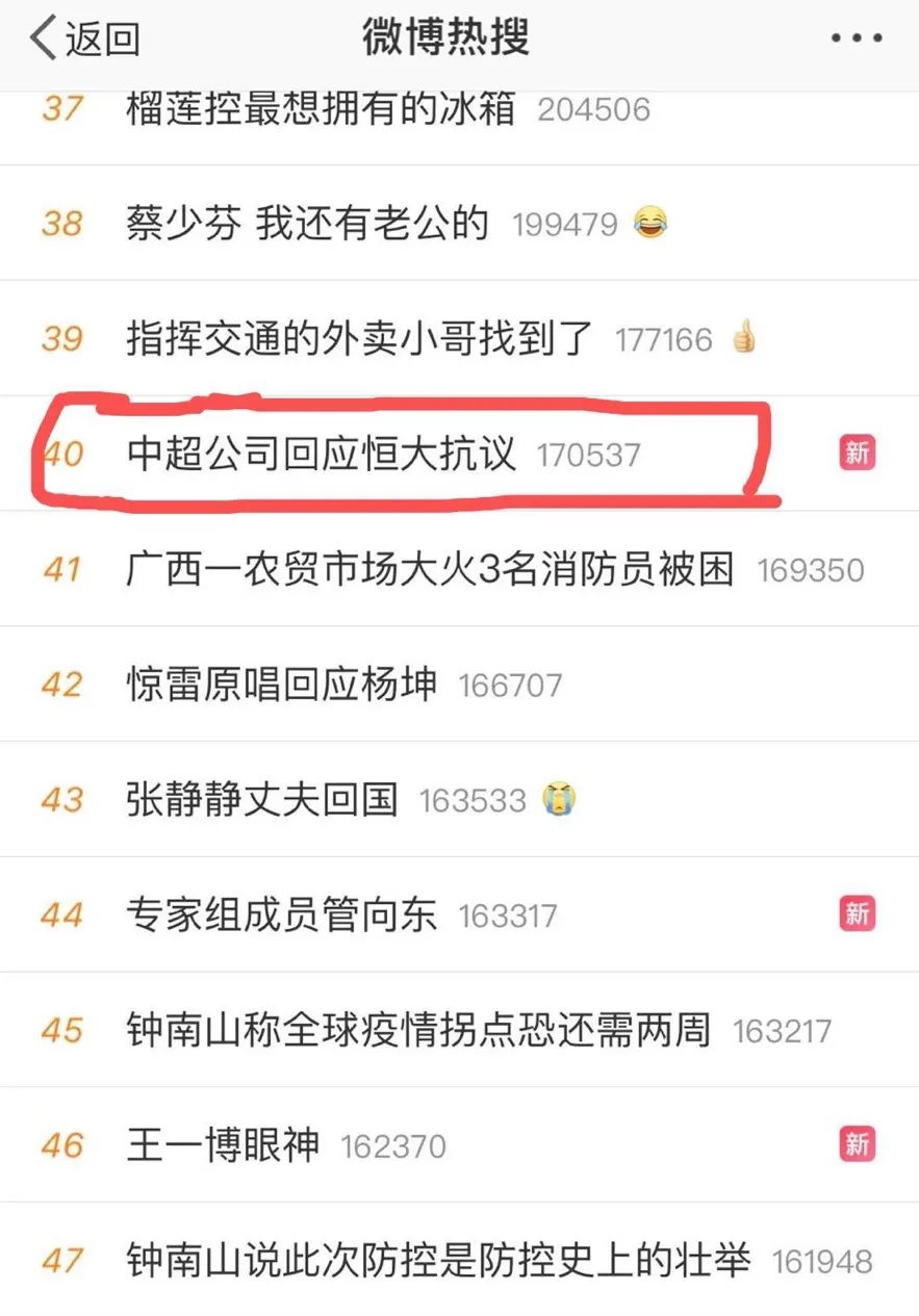 从恒大抗议中超公司处罚,到中超公司做出正式回应,此事持续发酵并在4月12日连续上了微博热搜。很多球迷感慨,恒大这50万元罚金交得真是物超所值。尽管“恒驰”成为恒大2020赛季胸前广告已是板上钉钉,但在中超无限期停摆的情况下,恒大自家汽车品牌曝光度下降已是不争事实。