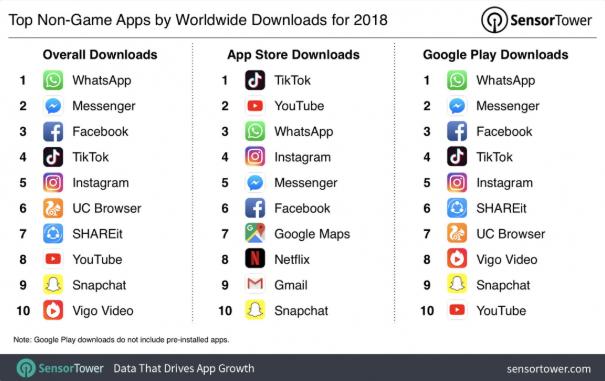 2017年9月份,字节跳动收购musical.ly,并将其与抖音海外版整合,以TikTok身份正式亮相海外市场。至此,TikTok最有力的竞争对手关停的关停,收编的收编。2018年,TikTok在苹果商店的下载量超过YouTube、Instagram、Facebook、Snapchat等社交媒体排名第一,一时风头无两。