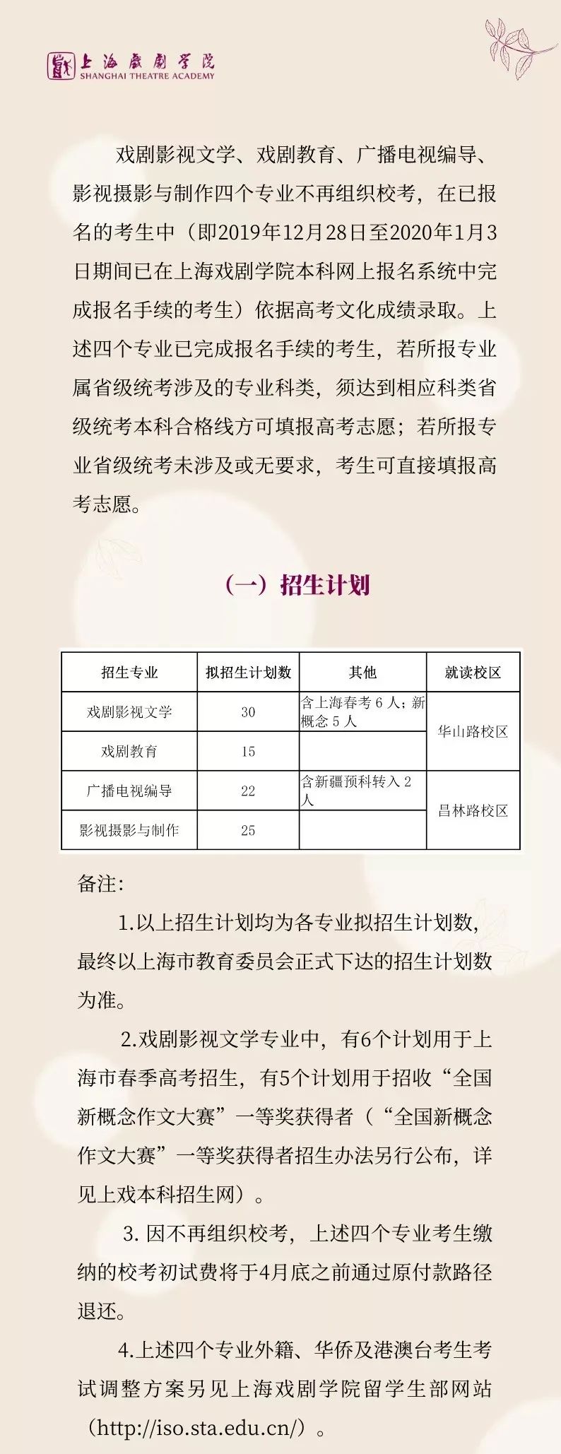第二个变化则是取消了“校考”,改为按照统考成绩+文化成绩/文化成绩来录取,主要面向戏剧影视文学、导演等“幕后”编导类专业。