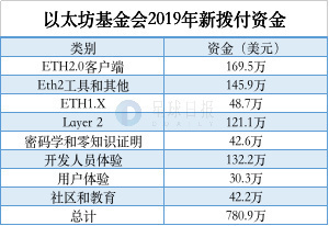 1.以太坊基金会:2019年向各团队新拨付的资金总计780.9万美元