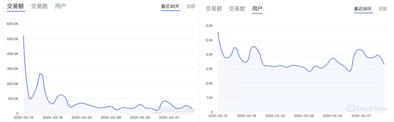 据 DAppTotal.com DEX专题页面数据显示:已统计的 17 个基于以太坊网络的 DEX 项目,过去一周链上交易额共计 335920 ETH(约 5374 万美元),环比上涨 24%;过去一周链上交易用户总计 26120 人,环比上涨 15%。