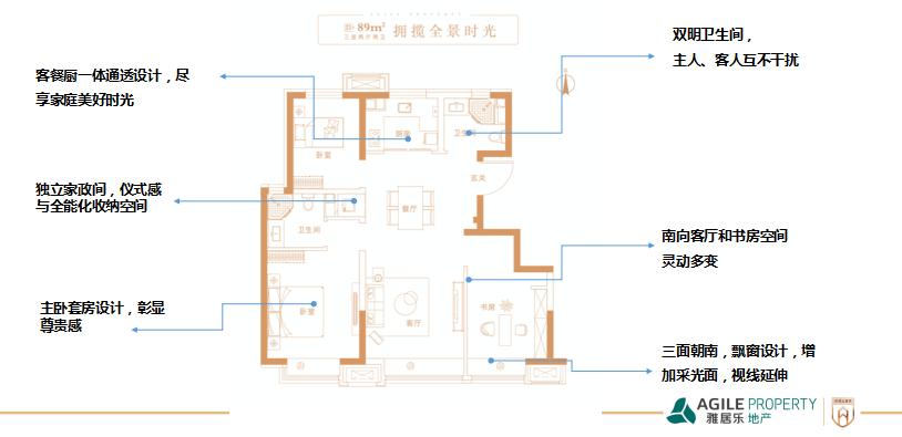 80㎡两居、89㎡三居以及135㎡四居,所有户型都做到了全明采光,也都配置了独立家政间,隐藏在客厅与厨房墙面里不足一平米的空间,的确很能戳中小户型女主人的收纳心。
