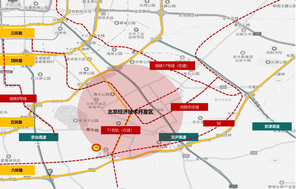 同在东南5.5环,台湖和亦庄享受着地铁17号线、亦庄线、S6号线等共有轨交资源,站在南北交通的大动脉上,未来也都能被纳入国贸CBD30分钟的通勤范围,但落在居住区附近的交通资源却略有不同。