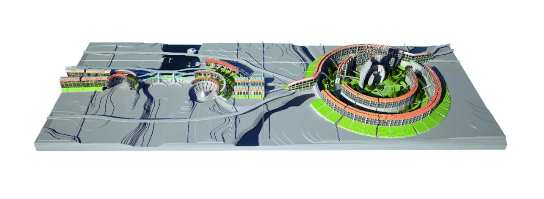 除了公园,线形城市的里还有其他的圆形大空间(上图左边的半圆形结构),能够满足人们的社交需求。居民还可以通过城市节点之间的桥梁和道路,去往其他的城市节点。在保护生态环境的同时,尽可能避免人类彼此孤立。