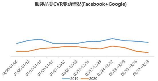 随着防疫措施不断升级,消费者被限制在相对单一的生活环境中(居家隔离),短期内所需要的商品将会减少。此外,出于对病毒传播、物流延迟等因素的顾虑,消费者也可能主动减少除生活必需品之外的网购。飞书深诺数据显示,由于疫情扩散,中国跨境电商广告CVR继续下行,已明显低于去年同期。