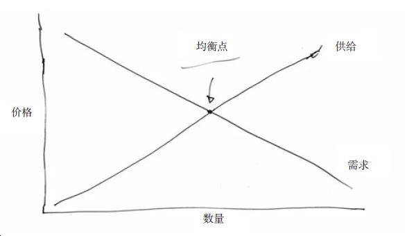 我在哈佛的时候,从大一下学期开始就去旁听那些我没有报名的课程,反而不怎么去上那些我报过的课——除了一门名为“Ec 10”的经济学入门课程。我被这个主题迷住了,那位教授非常优秀。他最开始教我们的内容之一就是下面这个供求关系图。在我上大学的那个年代(比我愿意承认的时间要早很多),这基本上就是全球经济的运行方式: