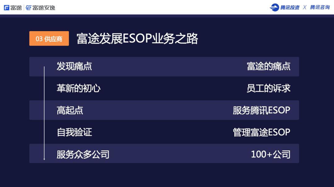 2019年5月我们正式发布了企业服务品牌“富途安逸(FUTU I&E)”,到目前为止富途安逸也已经服务了超过100家新经济企业,我们对于股权激励计划(ESOP)的理解是非常深刻和全面的。