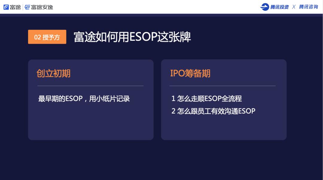 今天分享的话题是CEO如何打好ESOP这张牌,我觉得正好可以结合富途本身的经历以及富途安逸服务了那么多企业之后总结的经验与大家分享。