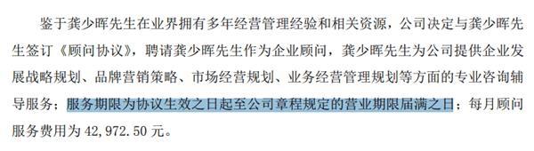 在深交所的追问下,公司辩称原计划只打算让龚少晖提供六个月的顾问服务,是“经办人复制模板的时候忘了改文本”,六个月才变成了无限期。