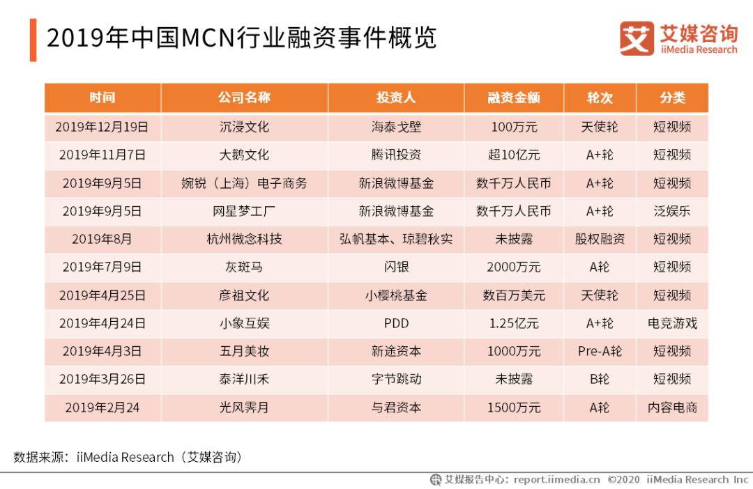毒眸从2019年MCN行业发展白皮书也了解到,资本从未冷落具有优质内容的潜力MCN,半数以上的MCN已经完成融资,且集中在A轮和天使轮。