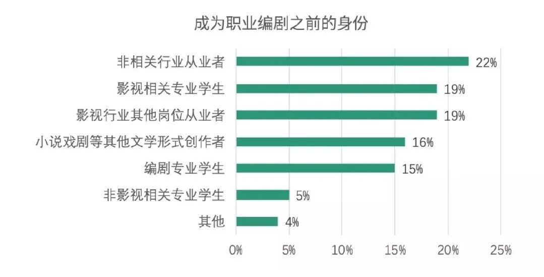 ▲成为编剧前,受访者多数从事影视和文学相关职业(图表来自《2019-2020中国青年编剧生态调查报告》)