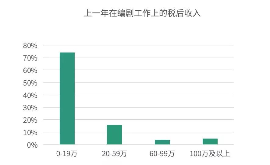 ▲2019-2020年,超过七成的编剧税后年收入不足20万(图表来自《2019-2020中国青年编剧生态调查报告》)