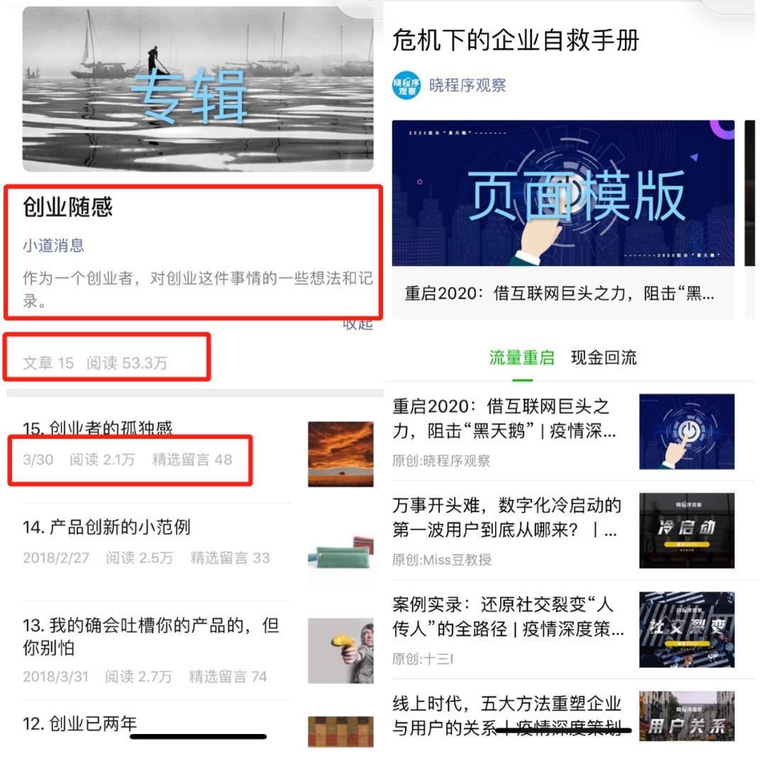 如果用传统媒体来类比,「专辑」就相当于专题报道,不同的是,「专辑」既有专题报道的整体性、震撼感,还能让每一篇文章都成为专题的入口。